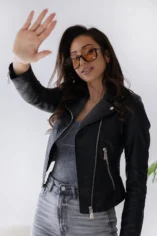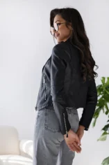 Ramoneska o klasycznym kroju wyko艅czona srebrnymi suwakami i napami to propozycja kt贸rej nie mo偶e zabrakn膮膰 w Twojej garderobie.